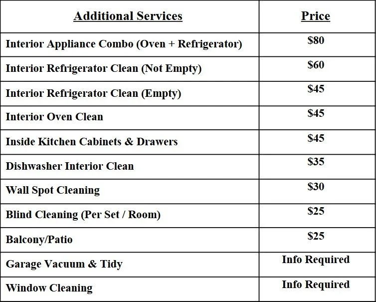 Additional Services May Be Added To Any Cleaning Service!
